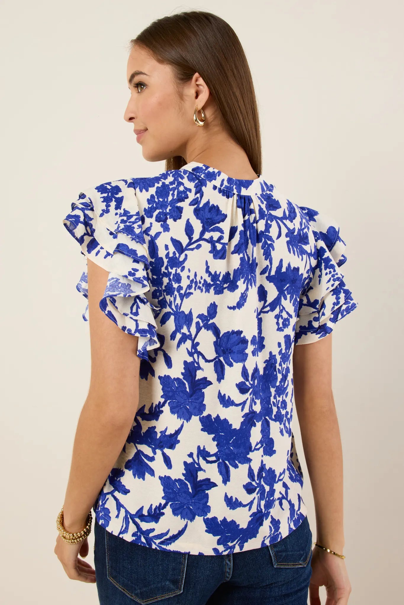 Fresh and floral! Our Betty Top will become a wear-on-repeat favorite. Style this with your favorite denim and pair with sandals for sunny days and warmer nights to come.