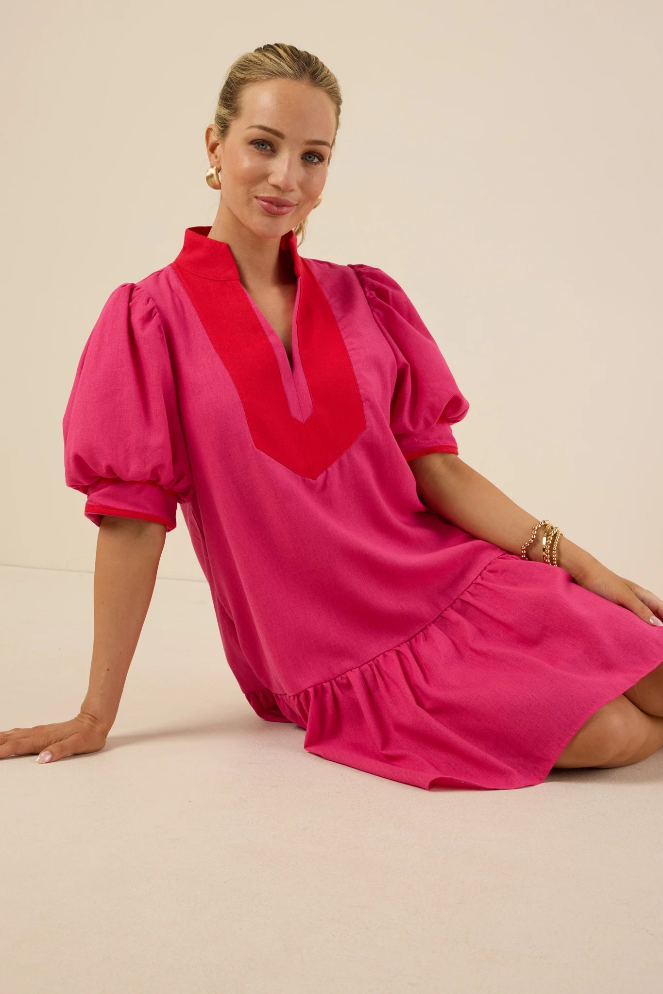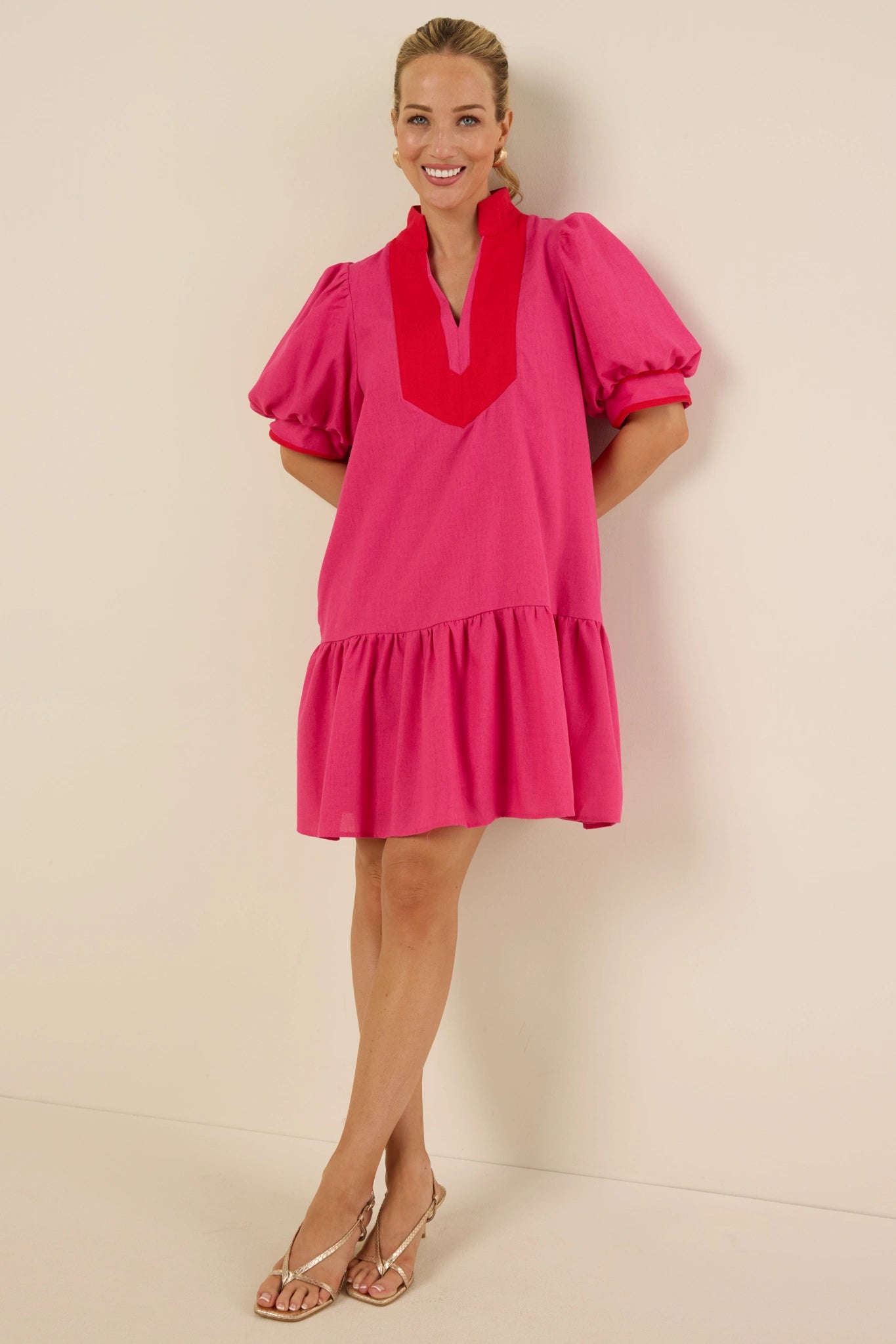 Pretty in pink! Our Mary Dress is as cute as it is comfortable. Style this with your favorite kitten heels and pair with a neutral bag–an easy, yet elevated option for Summer events, weekend plans, and more.